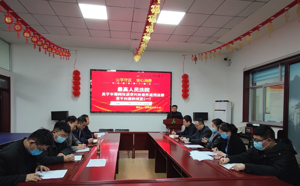 2022年3月14日,在3.15国际消费者权益日到来之际,我所组织全体律师集中学习最高人民法院《关于审理网络消费纠纷案件适用法律若干问题的规定(一)》,本次集中学习由安艳宏律师领学,并结合活动主题进行座谈研讨。