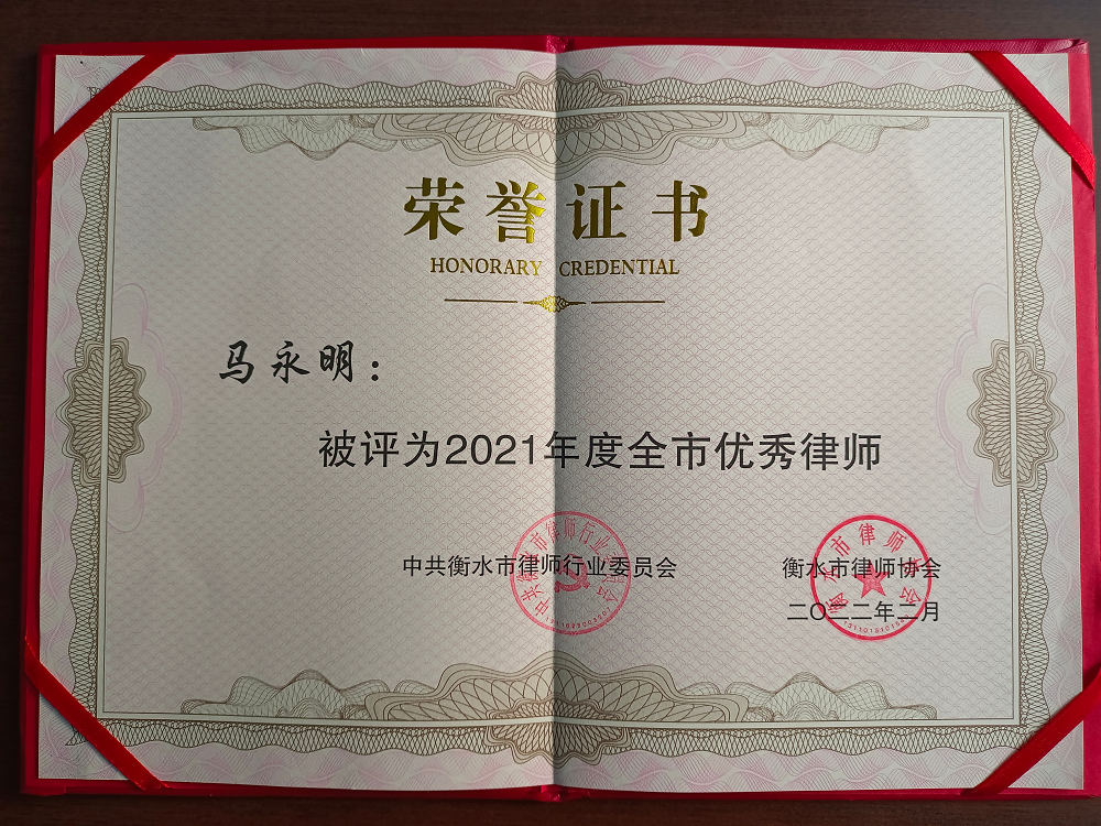为宣传和表彰我市律师队伍在推进法治衡水建设,服务经济社会发展,维护社会和谐稳定等方面的积极作用和突出贡献,弘扬律师规范执业、维护正义、奉献社会的职业风尚,市律师行业党委、市律师协会组织开展了衡水市2021年度“优秀律师事务所和优秀律师”评选活动。按照评选条件和标准,通过对申报材料严格审查,经市律协研究并报市律师行业党委同意,决定授予河北合明律师事务所等8家律师事务所2021年度“优秀律师事务所”荣誉称号;授予马永明等18名律师2021年度“优秀律师”荣誉称号。